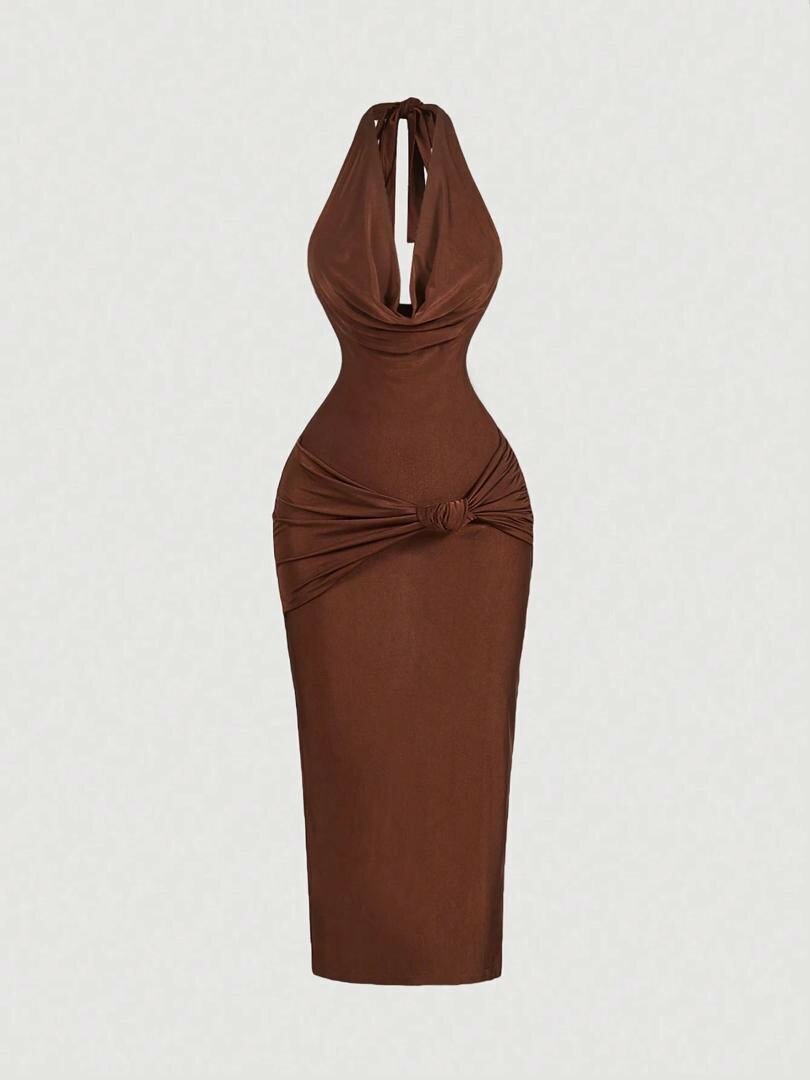Backless knot ruched dress