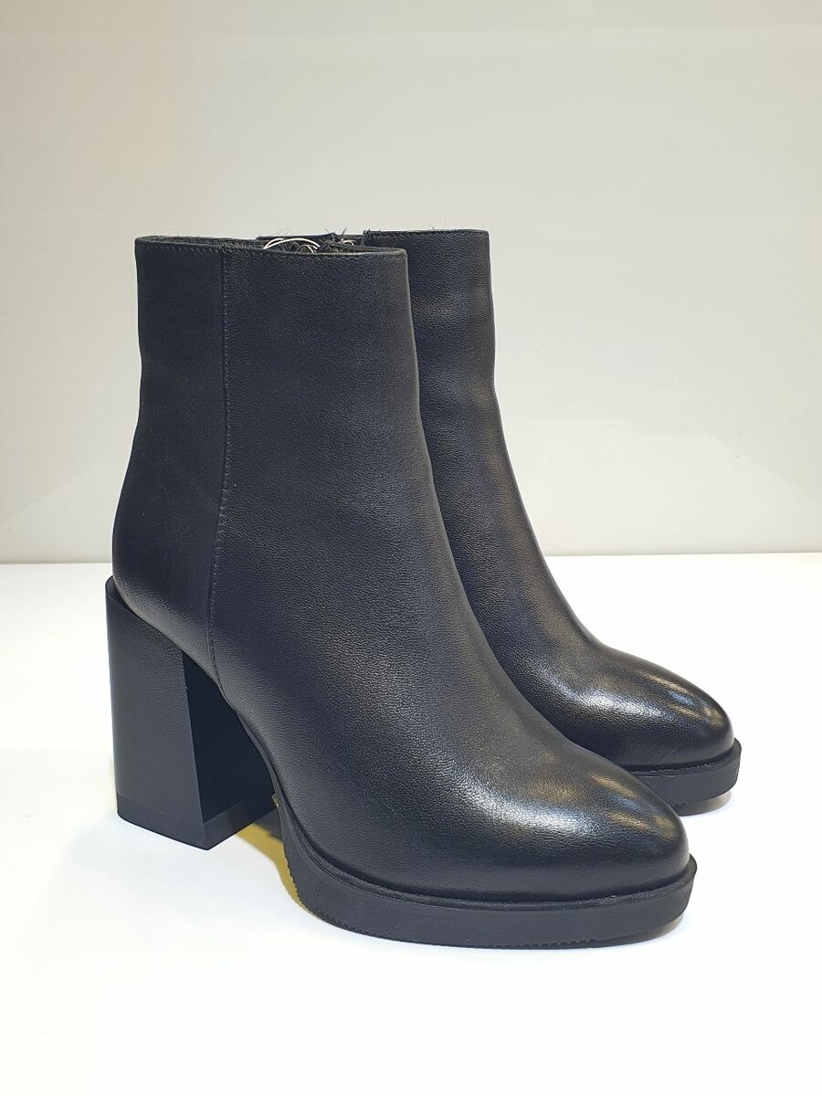 Материал: Натуральная кожа Цвет: Черный Подошва: Толстая рифленая резиновая подошва Каблук: Массивный квадратный каблук, высота около 7 см Застежка: Боковая молния Сезон: Зима Размер: 33, 35 Арт: 3852-9247-1