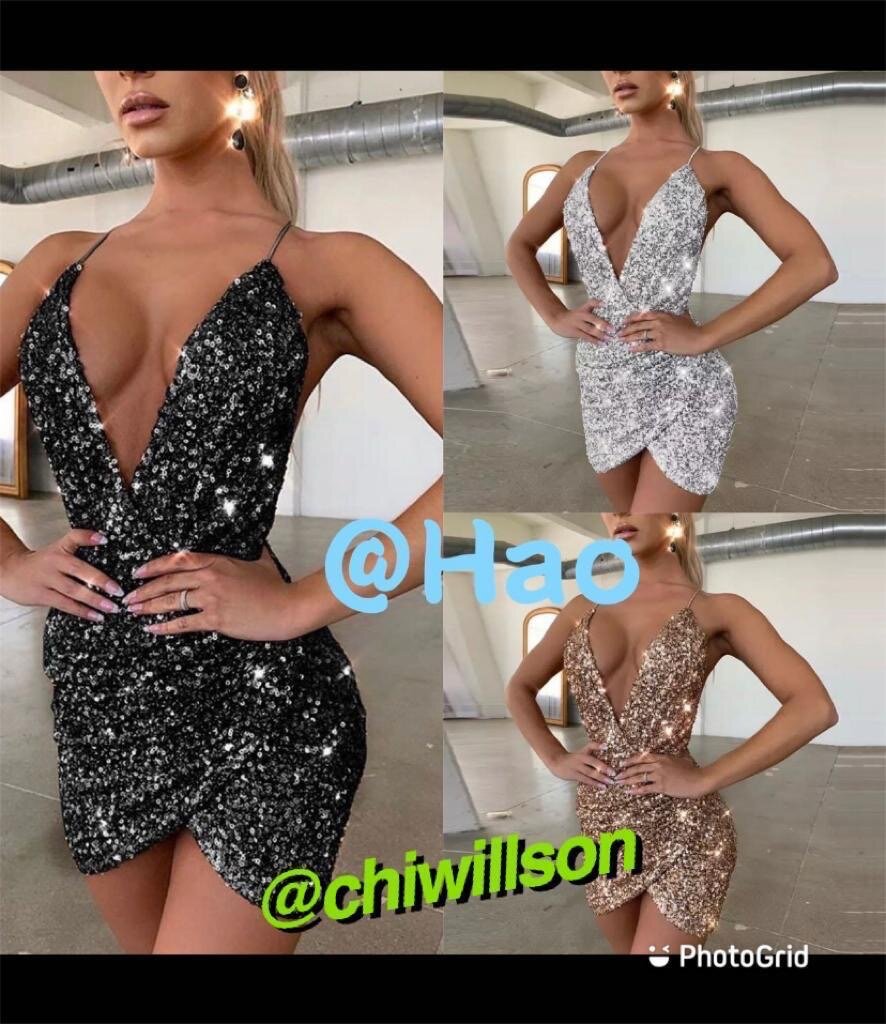 Deep V-neck Cut Out Front Backless Glitter Bodycon Dress