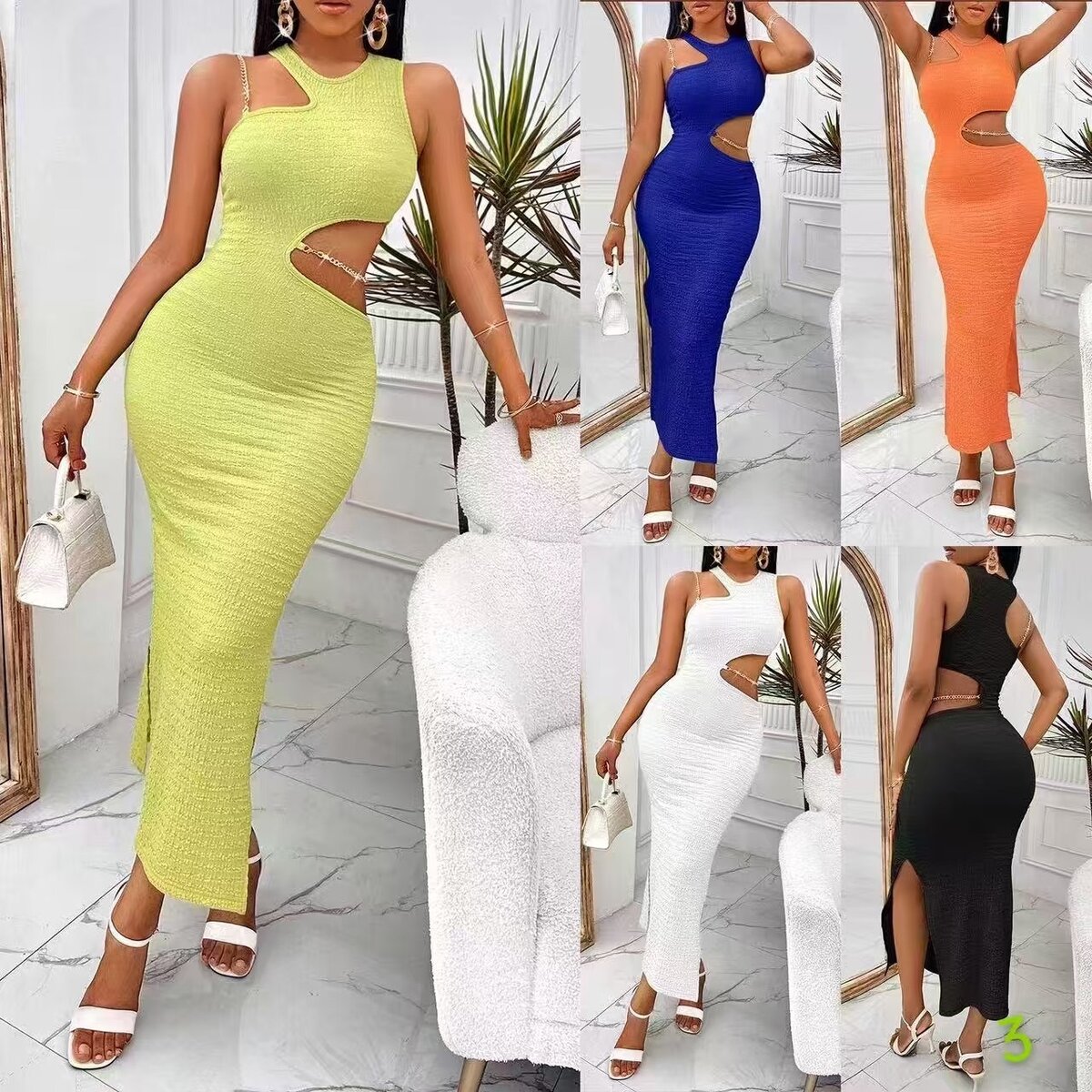 Solid Color Asymmetrical Neckline Hollow Out Sleeveless Top