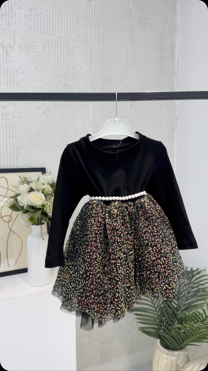 Восхитительное черное платье с блеском для девочек