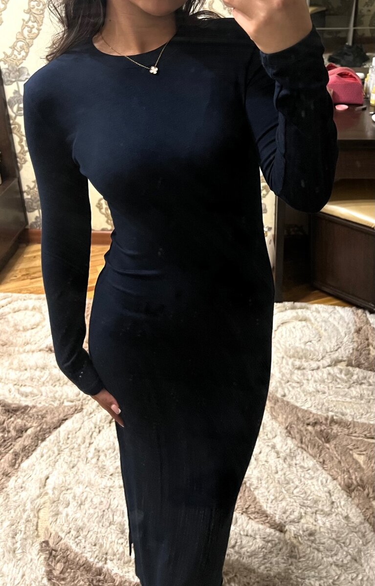 Темно синего цвета платье. Не ношеное, новая. Мягкий ткань, под скимс с небольшим разрезом с левой стороны. Идеально подойдет для 155-165 рост, немного закрывает щиколотку. На весну чтобы разнообразить гардероб самое то. Сдержанно, подчеркивает фигуру, цвет хит. И на повседневнку и на мероприятие.