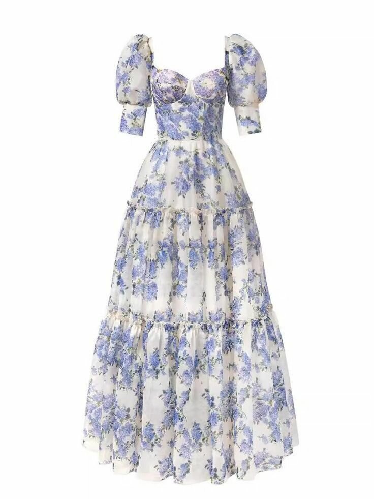 Изысканный дизайн: легкая, струящаяся ткань (органза) с цветочным узором в пастельных тонах делает это платье идеальным выбором для теплых дней и особенных случаев.