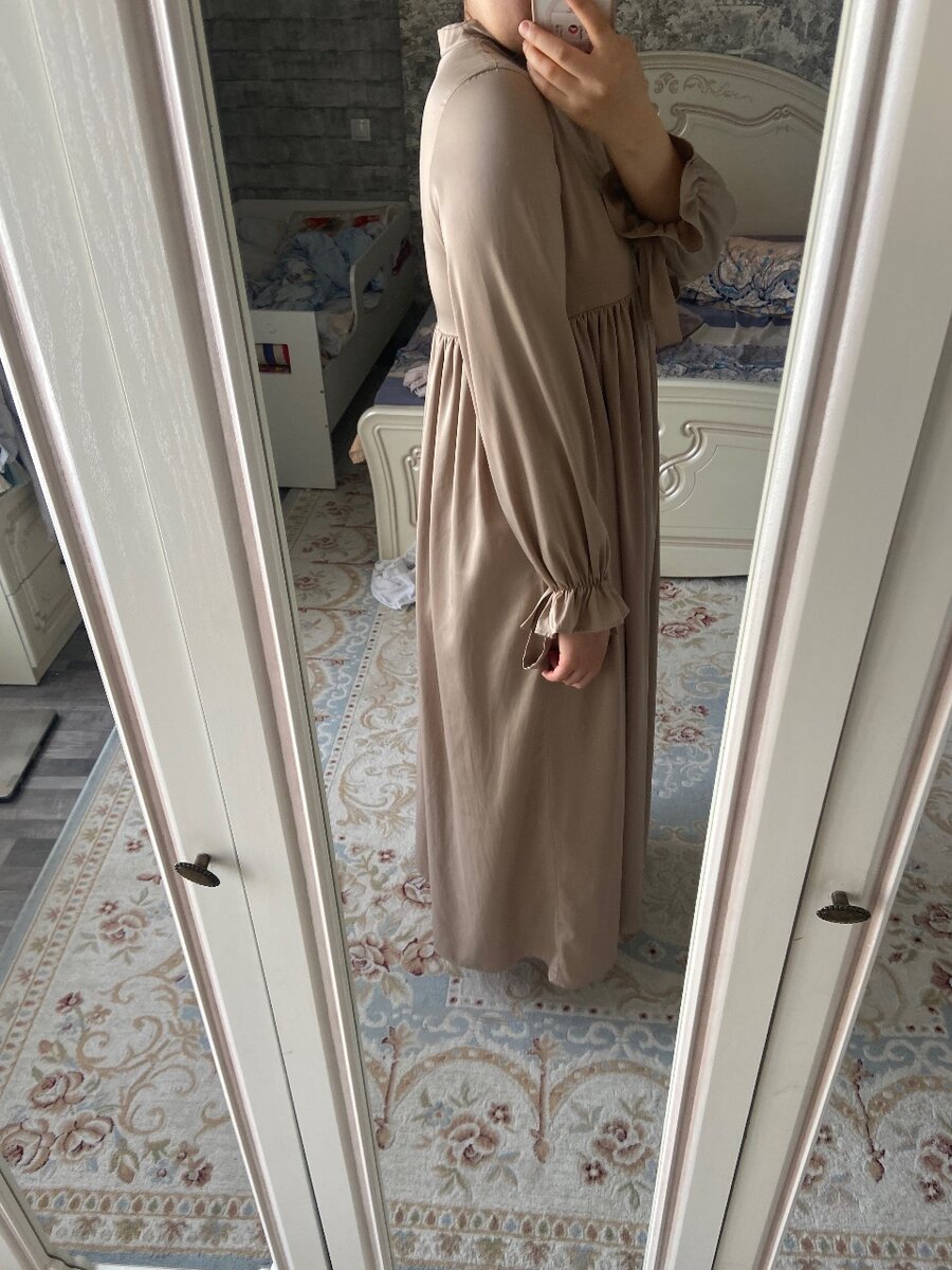 Платье шелковое. Размер стандарт, начиная от груди очень свободное. Есть замочек, подойдет некоторым для кормления. Длинное, пожтому покрытым тоже. Можно надеть национальную верхнюю одежду и получится национальный образ. Покупала в магазине Журт, за 2600 сом вроде, отдам за 1000 сом, в идеальном состоянии. Подойдет на ВЕСНА/ЛЕТО/ОСЕНЬ