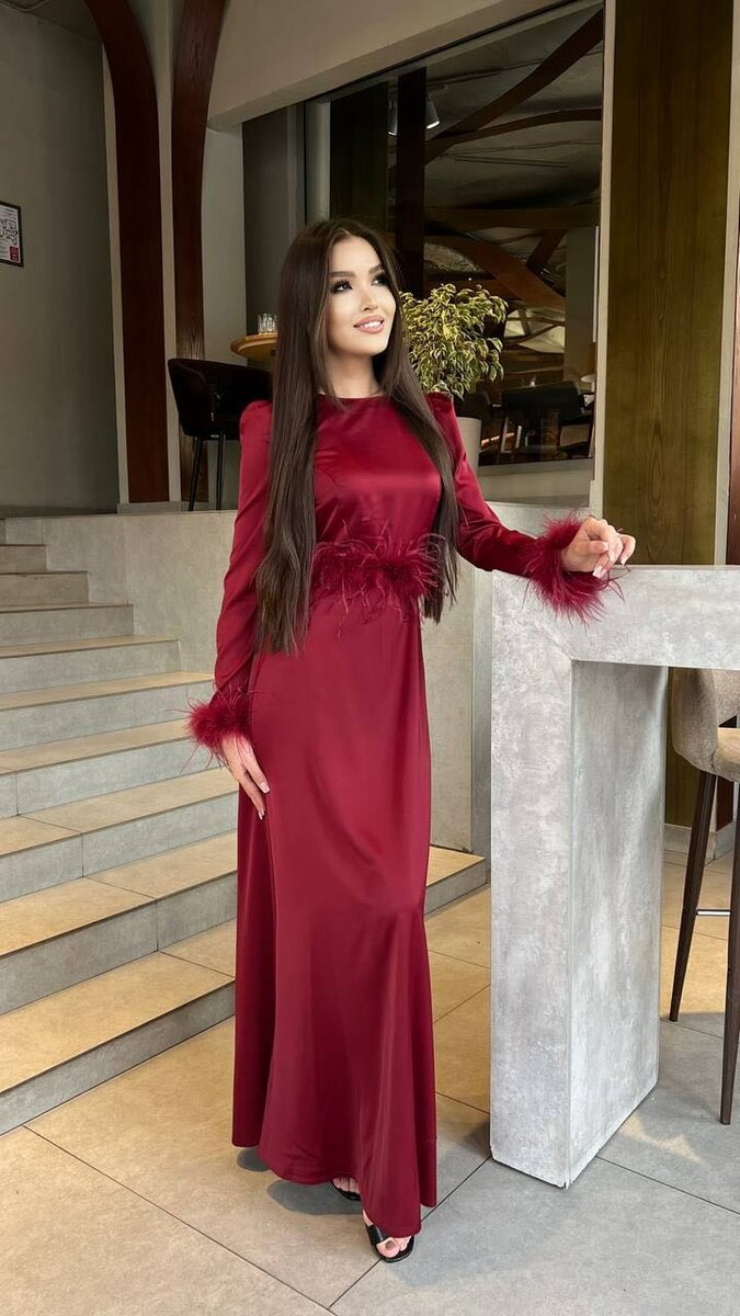 Шикарное платье с перьями. Длина макси, ткань шелк. Размеры 42-44