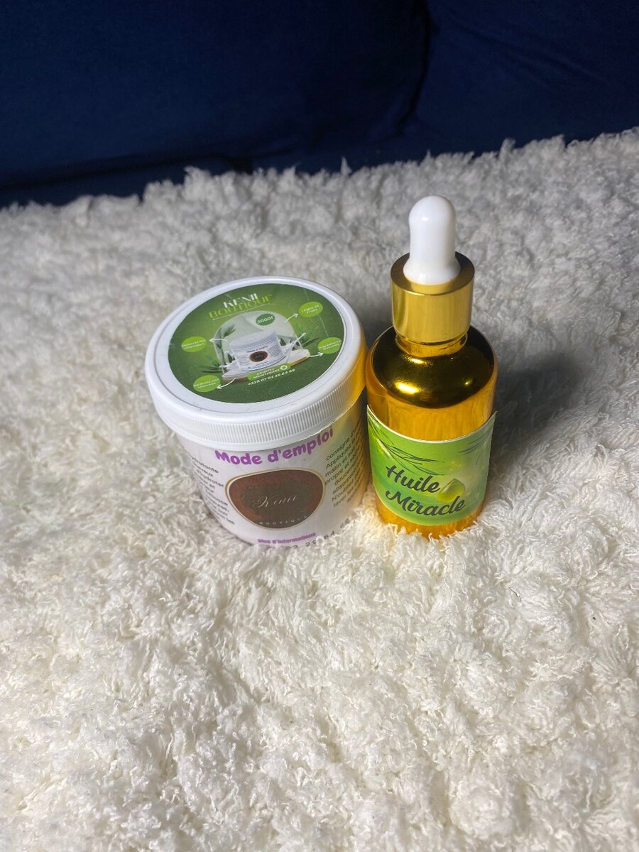 Découvrez notre duo élégant pour cheveux : l'Huile Miracle et la pommade hydratante de soin. Parfaits pour nourrir, hydrater et revitaliser vos cheveux. Utilisation simple pour des résultats exceptionnels. Convient à tous types de cheveux. Parfait pour un rituel de beauté quotidien.