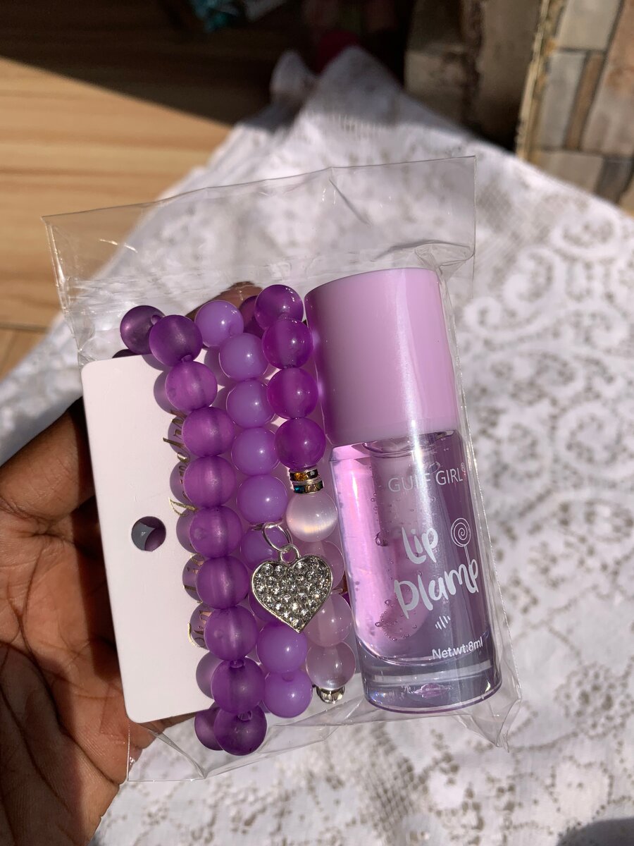 Ajoutez une touche de couleur et de soin à votre quotidien avec cet ensemble vibrant. Inclut des bracelets perles élégants et un gloss hydratant.