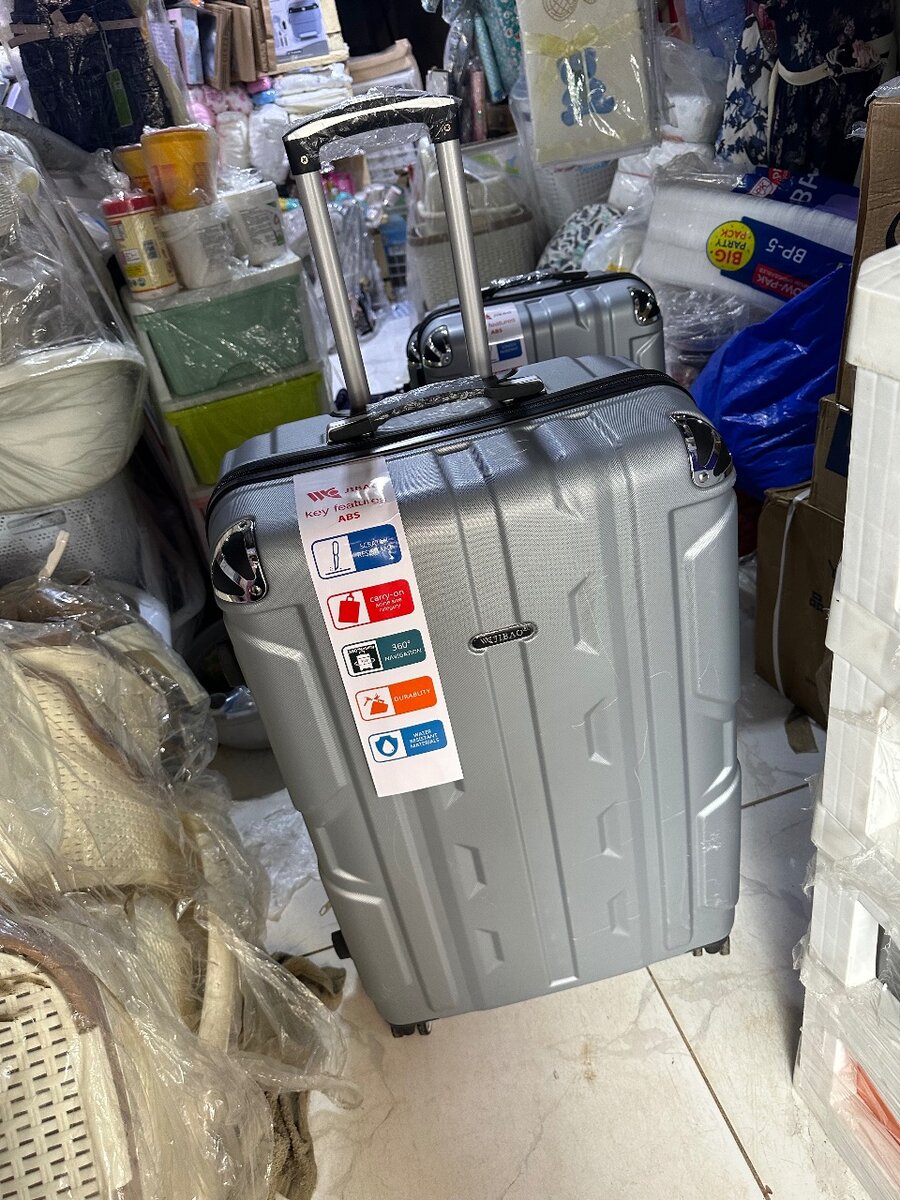 Travel in style with this durable silver suitcase. Perfect for weekend trips or long vacations, it offers ample space and smooth-rolling wheels for easy mobility. Its sleek design ensures your travels are both practical and fashionable.