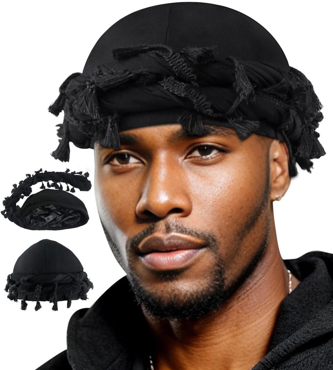 Optez pour ce durag noir élégant avec détails franges pour un style urbain unique. Fabriqué avec des matériaux de qualité, il est idéal pour protéger vos cheveux tout en offrant un look tendance. Parfait pour le quotidien ou des occasions spéciales.