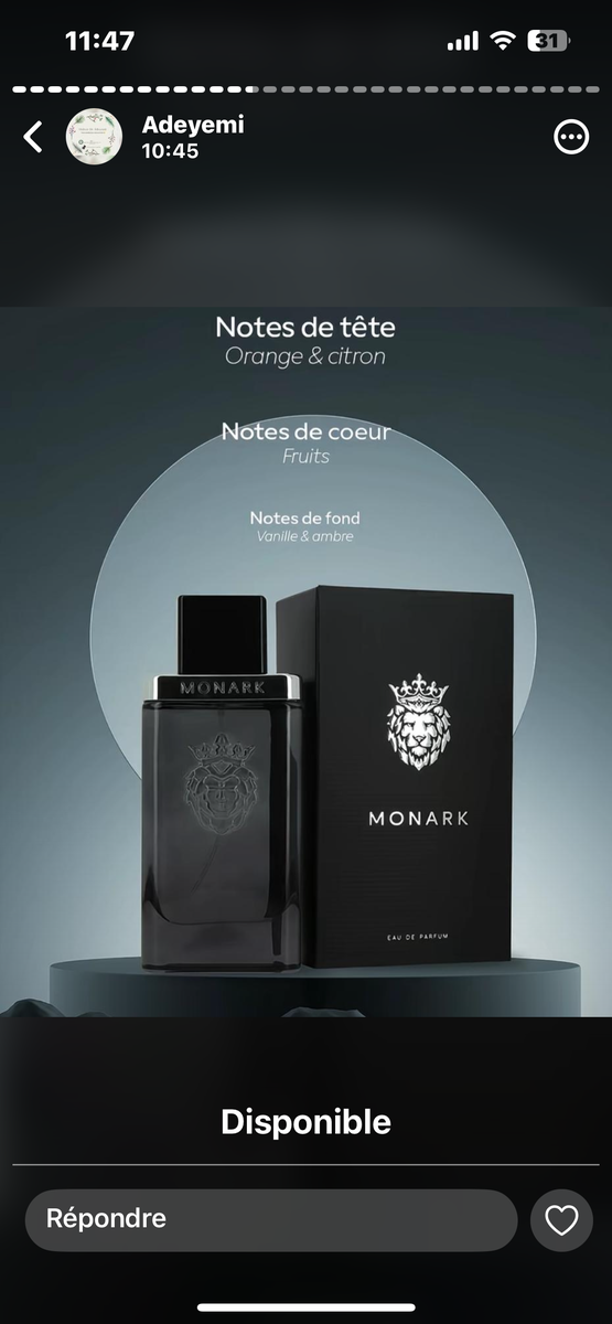 Découvrez Monark, une eau de parfum sophistiquée pour homme avec des notes d'orange, de citron et de fruits. Idéale pour une touche d'élégance au quotidien.