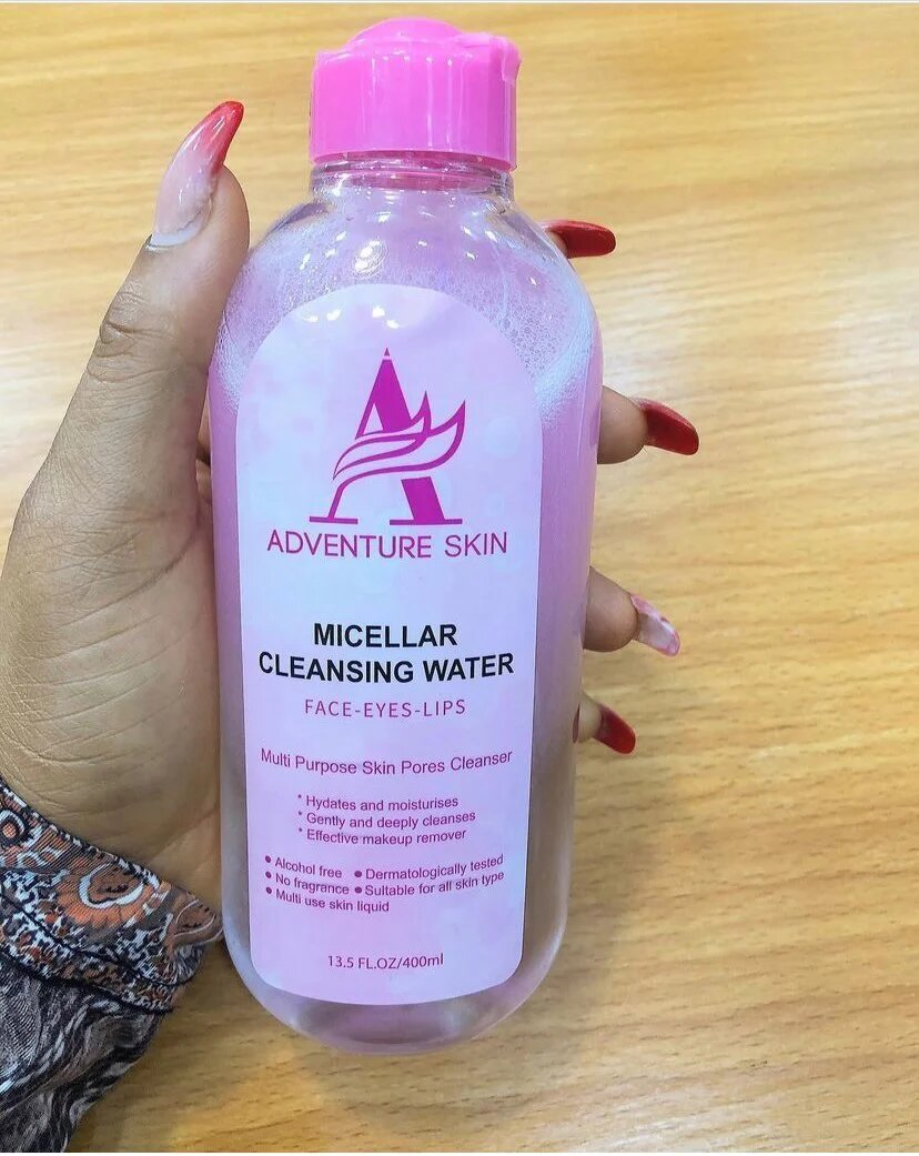 Découvrez l'eau micellaire Adventure Skin, parfaite pour nettoyer et hydrater le visage, les yeux et les lèvres. Formule douce et efficace, elle élimine le maquillage et les impuretés sans irriter. Parfait pour tous types de peau.