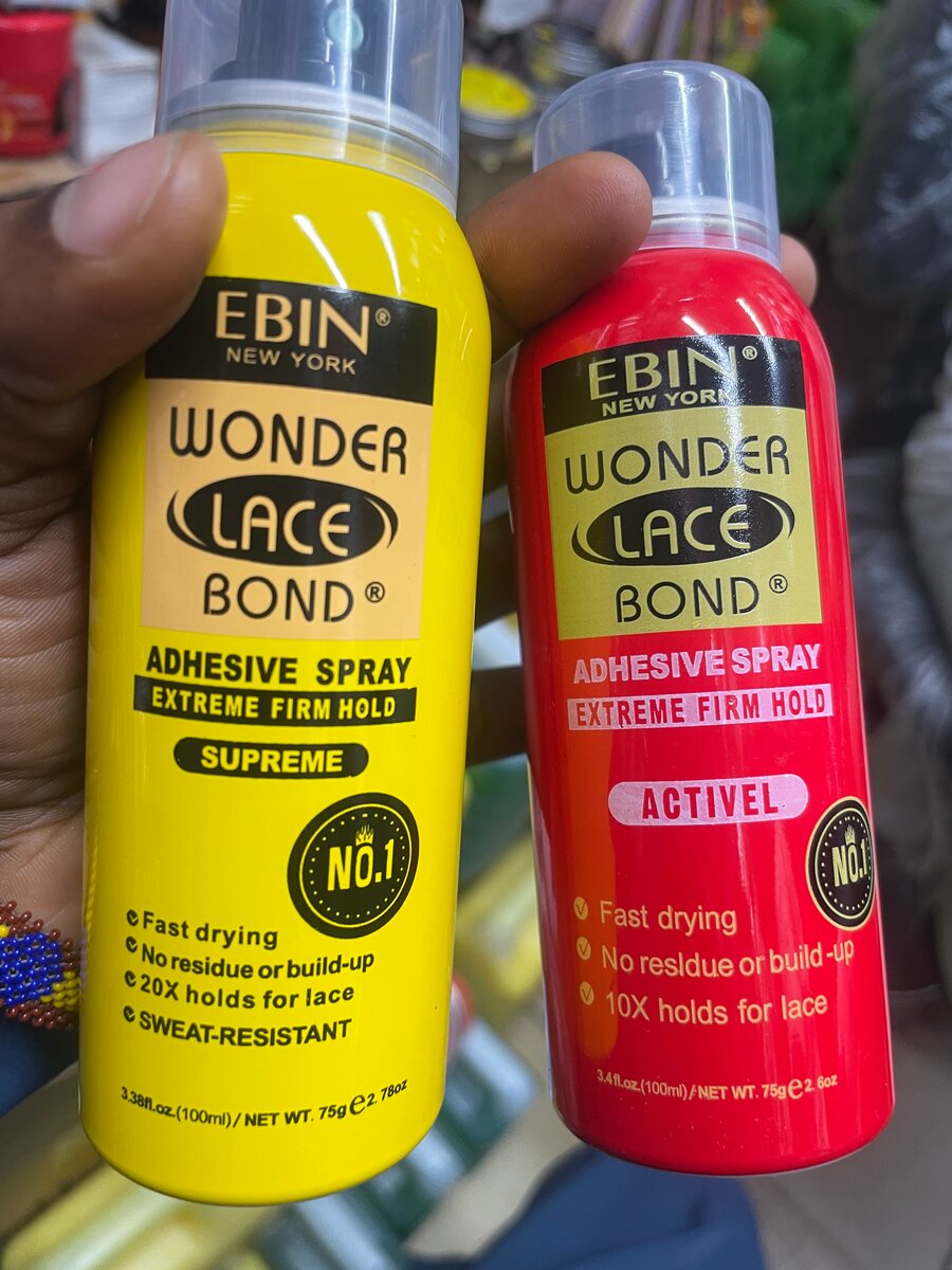 Experience unmatched hold and sweat-resistance with Ebin Wonder Lace Bond Adhesive Spray. Perfect for securing wigs and lace, this fast-drying spray leaves no residue while providing extreme firm hold. Ideal for daily wear or special occasions.