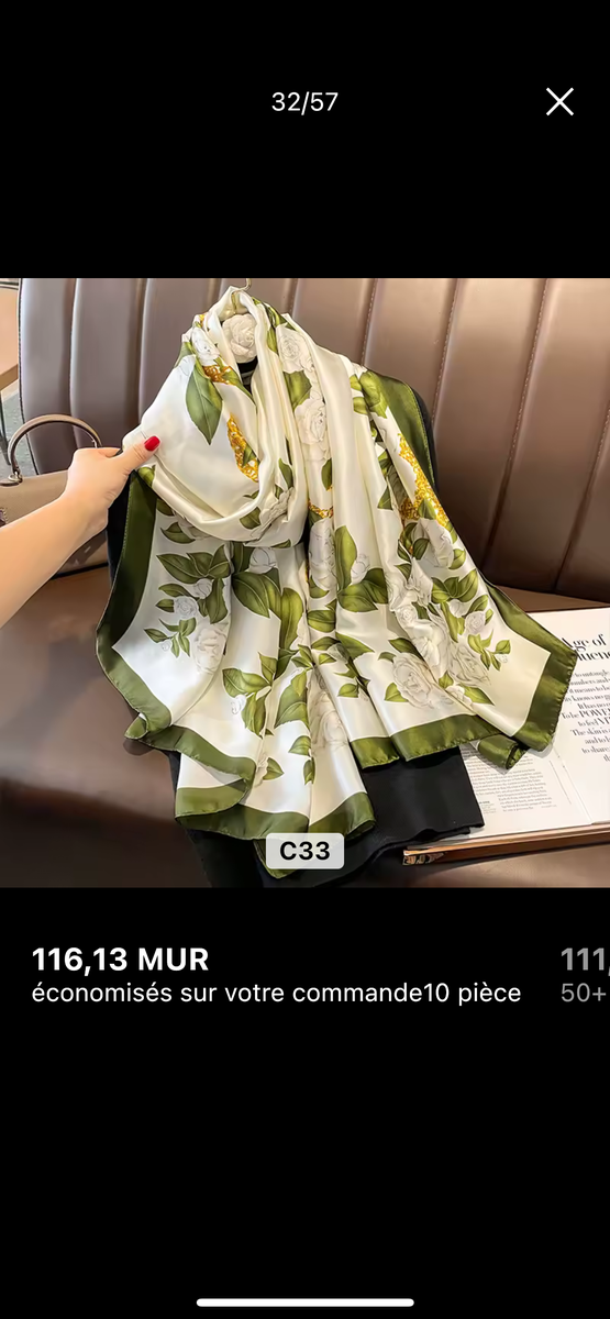 Ajoutez une touche d'élégance à votre tenue avec cette écharpe florale luxueuse. Parfaite pour toutes les saisons, elle offre à la fois confort et style. Que ce soit pour une sortie décontractée ou un événement spécial, cette écharpe apportera une note de sophistication à votre look. Idéale pour les femmes à la recherche de raffinement avec une touche de nature.