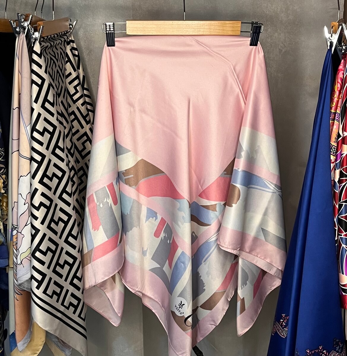 Élégante écharpe en soie avec des motifs modernes et des couleurs douces. Ajoutez une touche de sophistication à votre tenue quotidienne ou pour une occasion spéciale. Idéal pour toutes les saisons, cet accessoire est une déclaration de style ultime.
