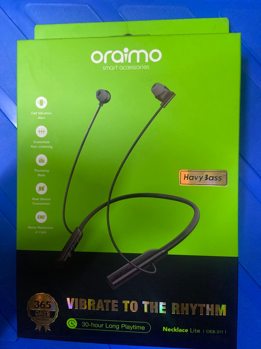Écouteurs Bluetooth Oraimo Necklace Lite 30h dautonomie, HavyBass, vibration pour appels Oraimo Necklace Lite (OEB-311) Écouteurs Bluetooth sans fil