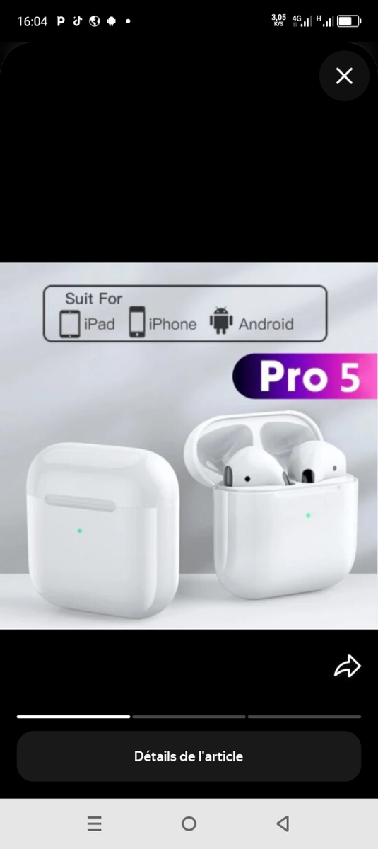 Découvrez les écouteurs sans fil Bluetooth Pro 5, parfaits pour iPhone, iPad et Android. Profitez d'un son de haute qualité et d'une connectivité facile pour vos appels et musiques. Idéal pour un usage quotidien.
