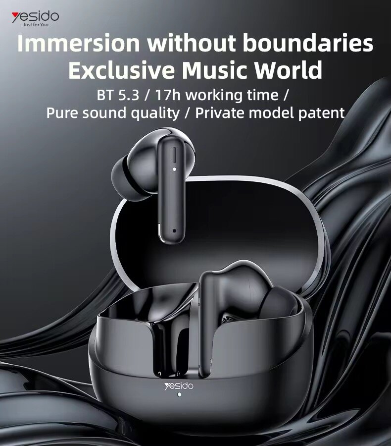 Découvrez les écouteurs Yesido avec Bluetooth 5.3, offrant jusqu'à 17 heures d'autonomie. Profitez d'une qualité sonore pure et d'un design breveté exclusif. Idéals pour écouter de la musique sans frontières et vivre une expérience immersive.