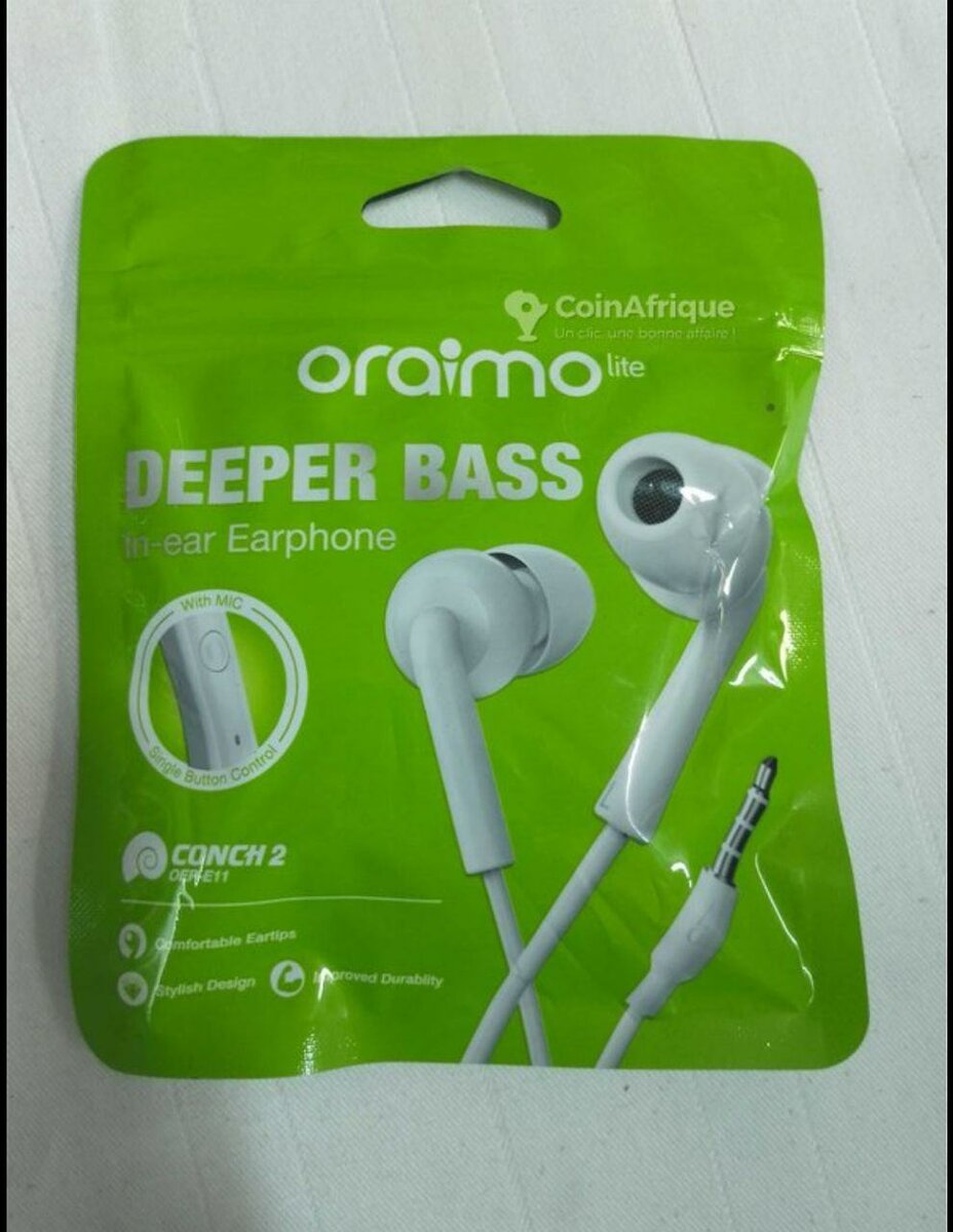 Découvrez les écouteurs filaires Oraimo Deep Bass pour une expérience audio exceptionnelle. Profondeur des basses et qualité sonore supérieure pour tous vos besoins.