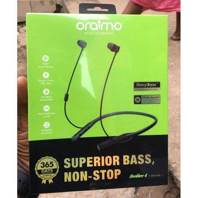 Profitez d'un son puissant et ininterrompu avec les écouteurs Oraimo Neckband. Dotés d'une autonomie de 10 heures, ces écouteurs sans fil sont parfaits pour vos journées actives. Le mode Heavy Bass vous garantit des basses profondes et riches. Recharge rapide et design confortable pour un usage prolongé. Idéal pour les amateurs de musique et les professionnels en déplacement.