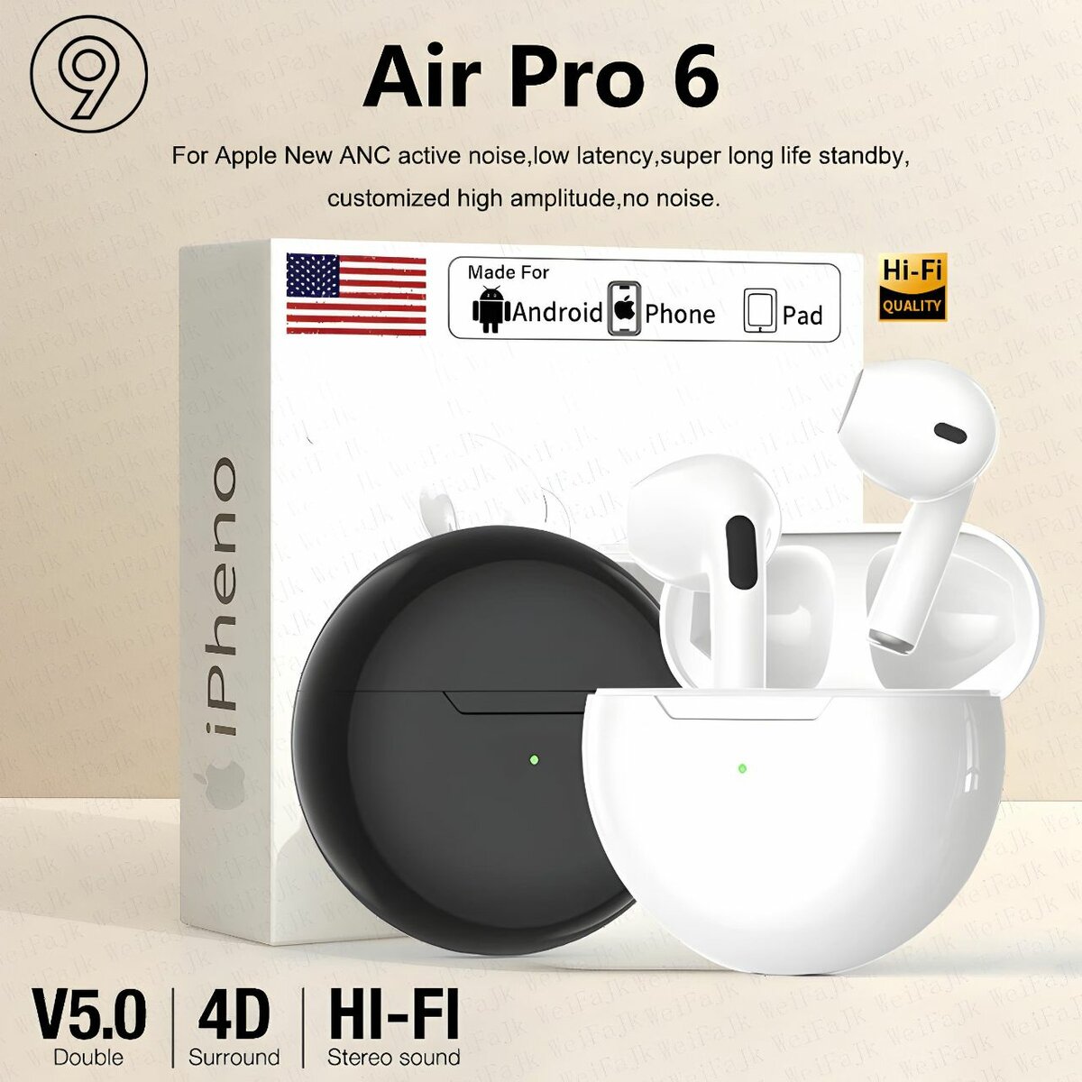 Découvrez les écouteurs sans fil iPheno Air Pro 6 avec une qualité Hi-Fi, une réduction de bruit active et une autonomie exceptionnelle. Idéal pour Android, iPhone et iPad.