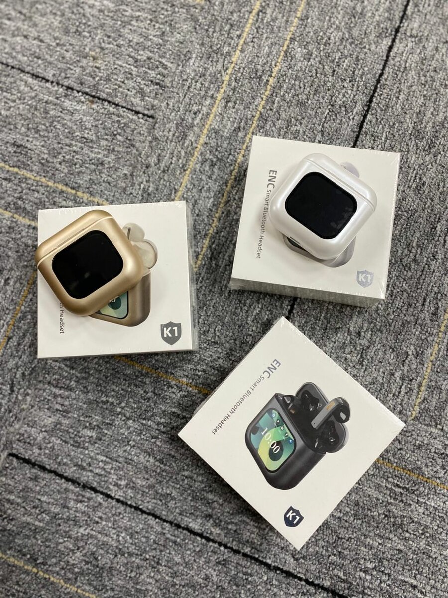 Écouteurs Bluetooth K1 avec boîtier de charge. Design élégant et compact. Connexion stable et son haute qualité pour une expérience audio exceptionnelle.