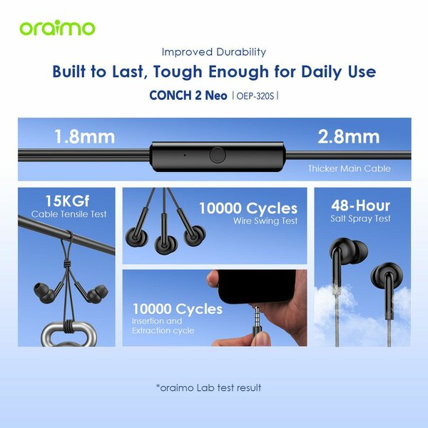 Découvrez les oraimo SpaceBuds Air, des écouteurs sans fil au confort absolu et à la qualité sonore exceptionnelle. Avec une connexion facile via câble Type-C, ils sont idéaux pour une utilisation quotidienne. Légers et élégants, ils s'accompagnent d'une lanière pratique. Profitez d'un son immersif où que vous soyez !