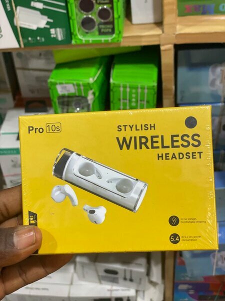 Écouteurs sans fil Pro 10s, design moderne, boîtier long, son stéréo. Connectivité rapide, produit neuf.