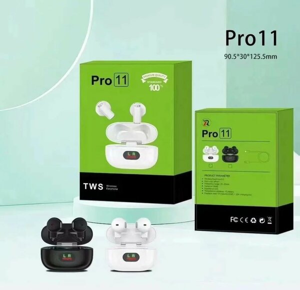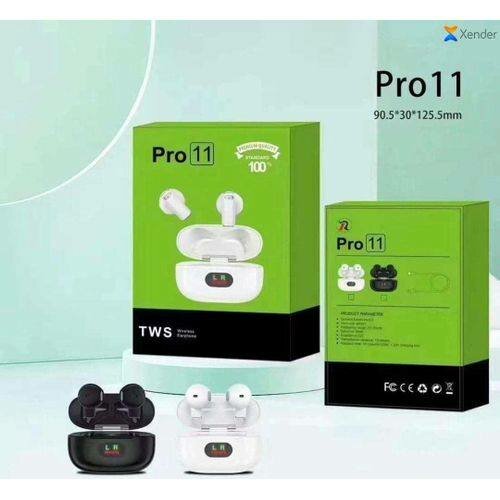 Profitez d'un son exceptionnel avec les écouteurs sans fil Pro 11 TWS. Design compact et élégant, idéal pour une utilisation quotidienne. Connectivité Bluetooth stable et longue durée de batterie. Parfait pour la musique, les appels et les loisirs.
