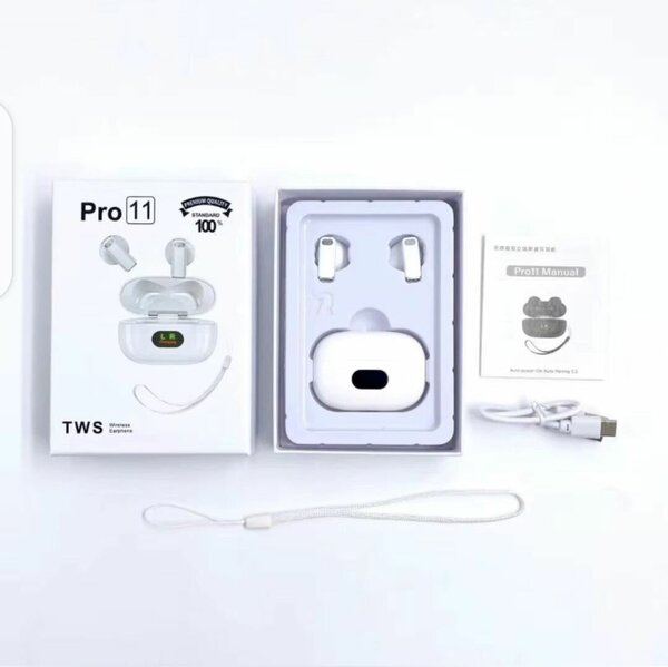 Découvrez les écouteurs Bluetooth Pro11 avec réduction de bruit. Confort optimisé pour une écoute prolongée. Idéal pour la musique, les appels et le sport. Profitez d’un son clair et puissant avec une batterie longue durée. Compatible avec iOS et Android.