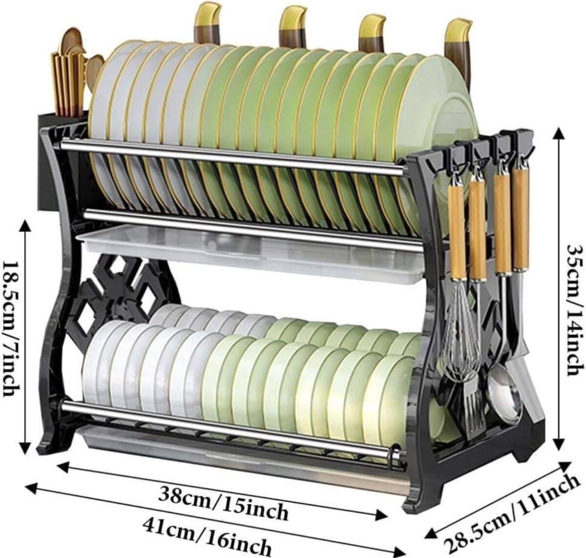 Egoutoir de cuisine à 2 niveaux en acier inoxydable et plastique