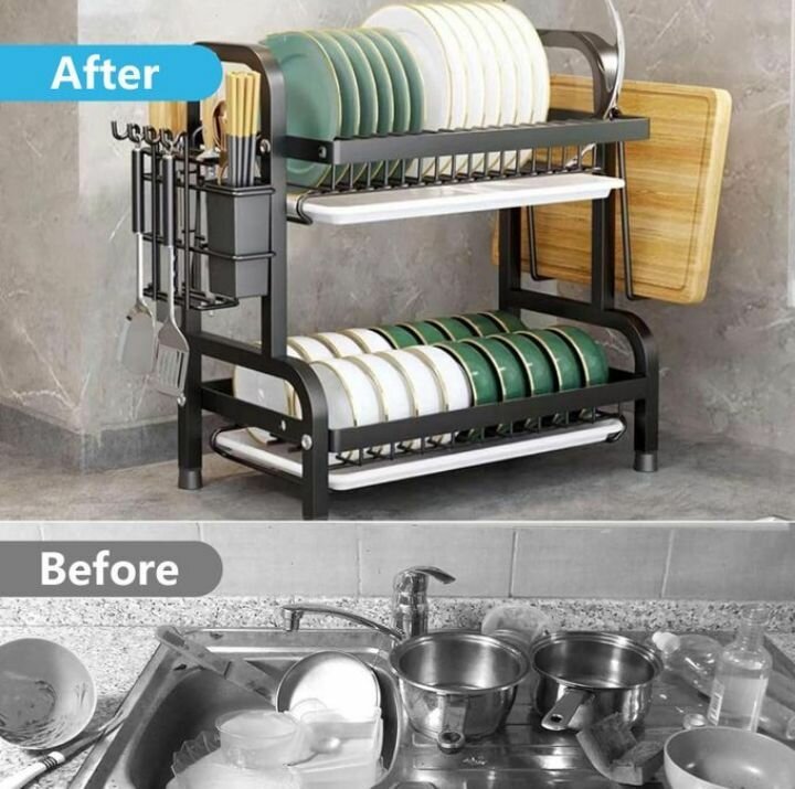 Organisez votre cuisine avec cet égouttoir à vaisselle robuste et élégant. Deux niveaux pour une capacité maximale, idéal pour les assiettes, couverts et ustensiles. Facile à assembler et durable.