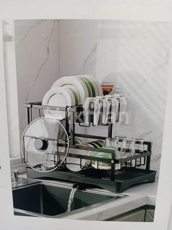 Égouttoir à vaisselle en acier inoxydable avec rack pour assiettes, couverts et verres. Design compact et robuste, idéal pour les cuisines modernes.