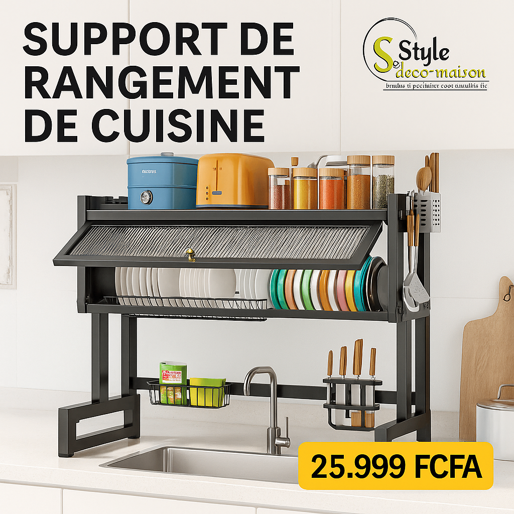 Optimisez votre cuisine avec ce support de rangement multifonctionnel. Parfait pour organiser vos assiettes, ustensiles et épices. Conception robuste pour une durabilité exceptionnelle. Idéal pour les familles recherchant une solution élégante et pratique pour leur espace de cuisine. Facile à monter au-dessus de l'évier.