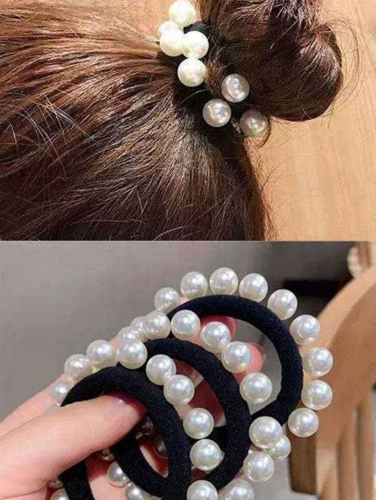 Deux (2) élégants élastiques pour cheveux avec perles, parfait pour ajouter une touche de sophistication à vos coiffures. Idéal pour un usage quotidien ou des occasions spéciales.