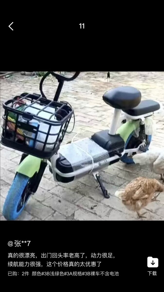 Wheels: 14-inch vacuum tires, lens headlights, front and rear double shock absorption, double padded seat, plastic basket, three-speed transmission.