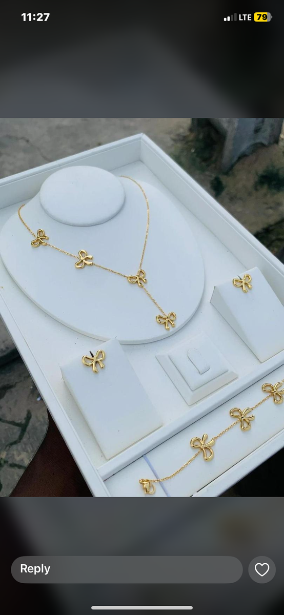 Discover timeless elegance with this Butterfly Jewelry Set. Perfect for special occasions or daily wear, this gold-toned set includes a necklace, earrings, ring, and bracelet. Designed to add a touch of sophistication and charm to any outfit.
