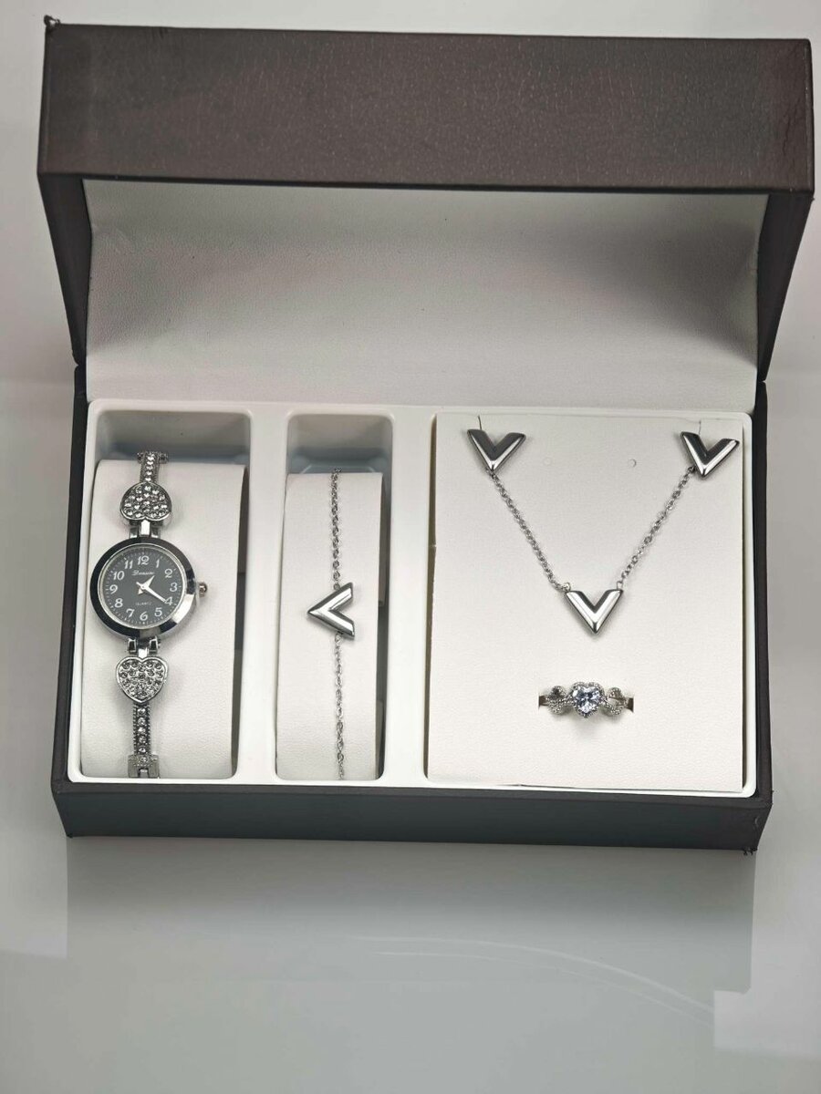 Découvrez l'élégance intemporelle avec ce coffret bijoux comprenant une montre scintillante, un collier tendance et une bague délicate. Parfait pour sublimer votre style ou pour offrir un cadeau inoubliable. Idéal pour les occasions spéciales ou pour illuminer votre quotidien.