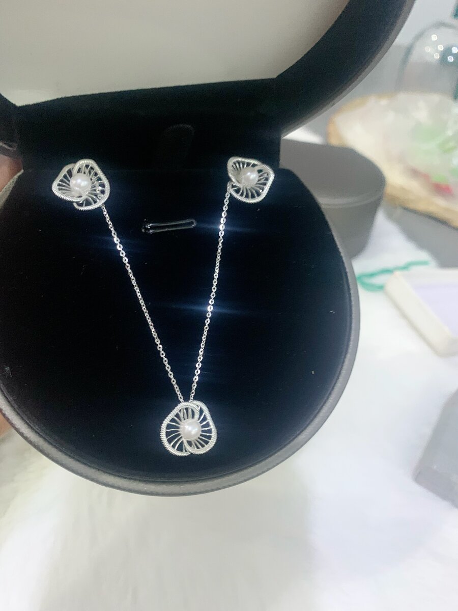 Découvrez cet élégant ensemble composé d'un collier et de boucles d'oreilles en argent, parfait pour ajouter une touche de sophistication à n'importe quelle tenue. Sa finition délicate et son design raffiné en font le choix idéal pour les occasions spéciales ou comme cadeau raffiné. Brillez avec élégance grâce à cet ensemble incontournable de la joaillerie moderne.