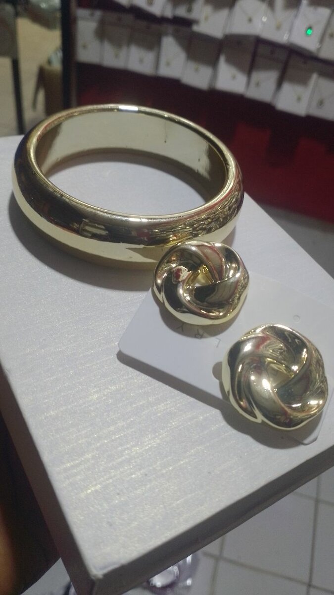 This elegant gold bracelet and earring set adds sophistication to any outfit. Perfect for special occasions or everyday wear, the set features a smooth, polished design that complements any style. Ideal for gifting, this jewelry is a must-have accessory.