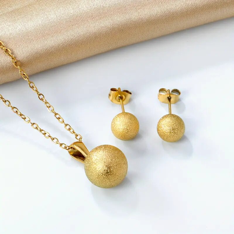 Discover timeless elegance with this exquisite gold jewelry set. Featuring a delicate necklace and matching earrings, this set is the perfect choice for any special occasion. Crafted with precision, it adds a touch of luxury and sophistication to your ensemble. Ideal for gifting or enhancing your personal collection, this gold set is a must-have for jewelry lovers.