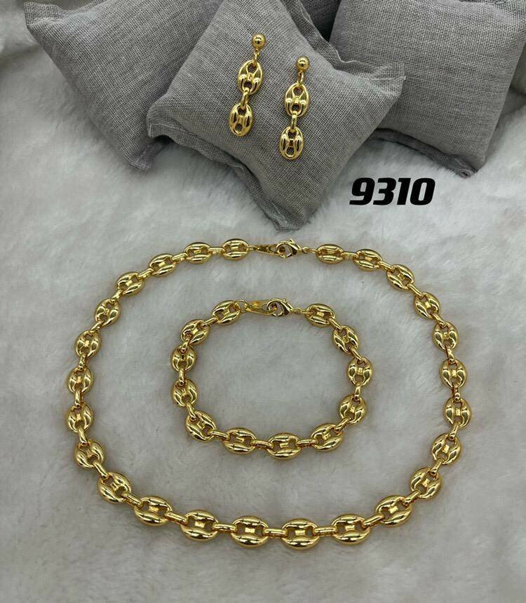 Enhance your style with this gold jewelry set, featuring a necklace, bracelet, and matching earrings. Perfect for any occasion, offering timeless elegance and made with high-quality materials. An ideal gift or a special treat for yourself.