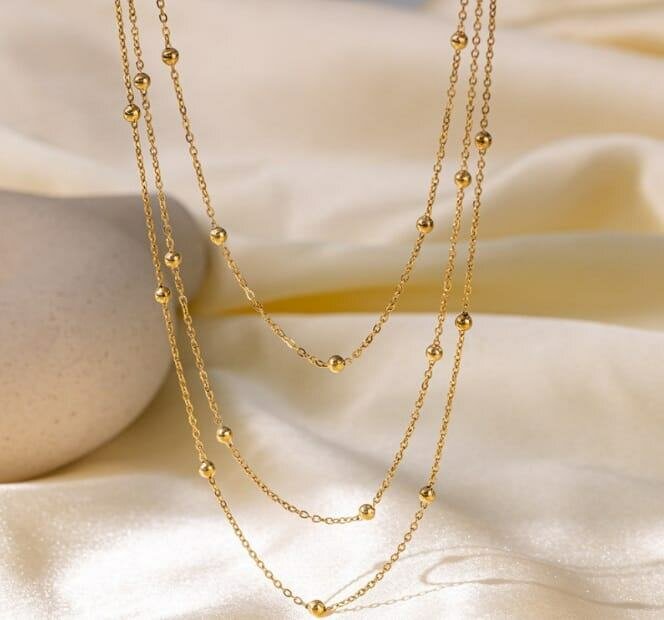 Elevate your style with this elegant gold layered necklace. Its delicate chains and trendy design add sophistication to any outfit, perfect for casual or formal occasions. A must-have accessory for fashion-forward individuals.