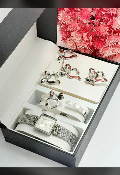 Discover the ultimate collection with this stunning jewelry gift set, including a chic wristwatch, elegant earrings, and a matching bracelet. Perfect for gifting or personal elegance.