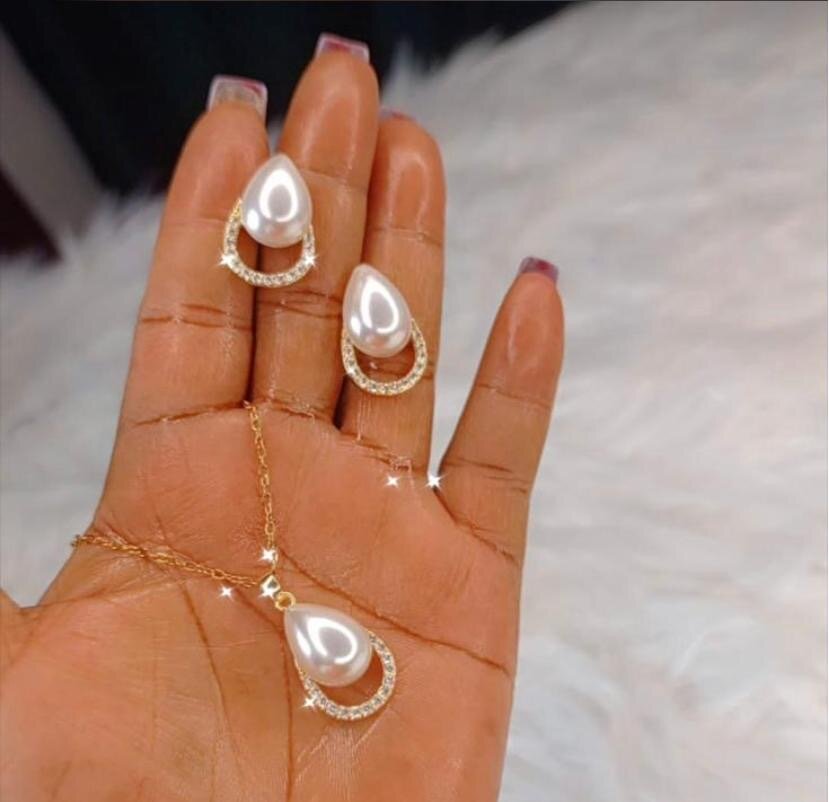 Elevate your style with this elegant pearl jewelry set featuring a stunning necklace and matching earrings. Perfect for formal occasions or gifting, this set combines timeless pearls with a modern touch of gold accents.