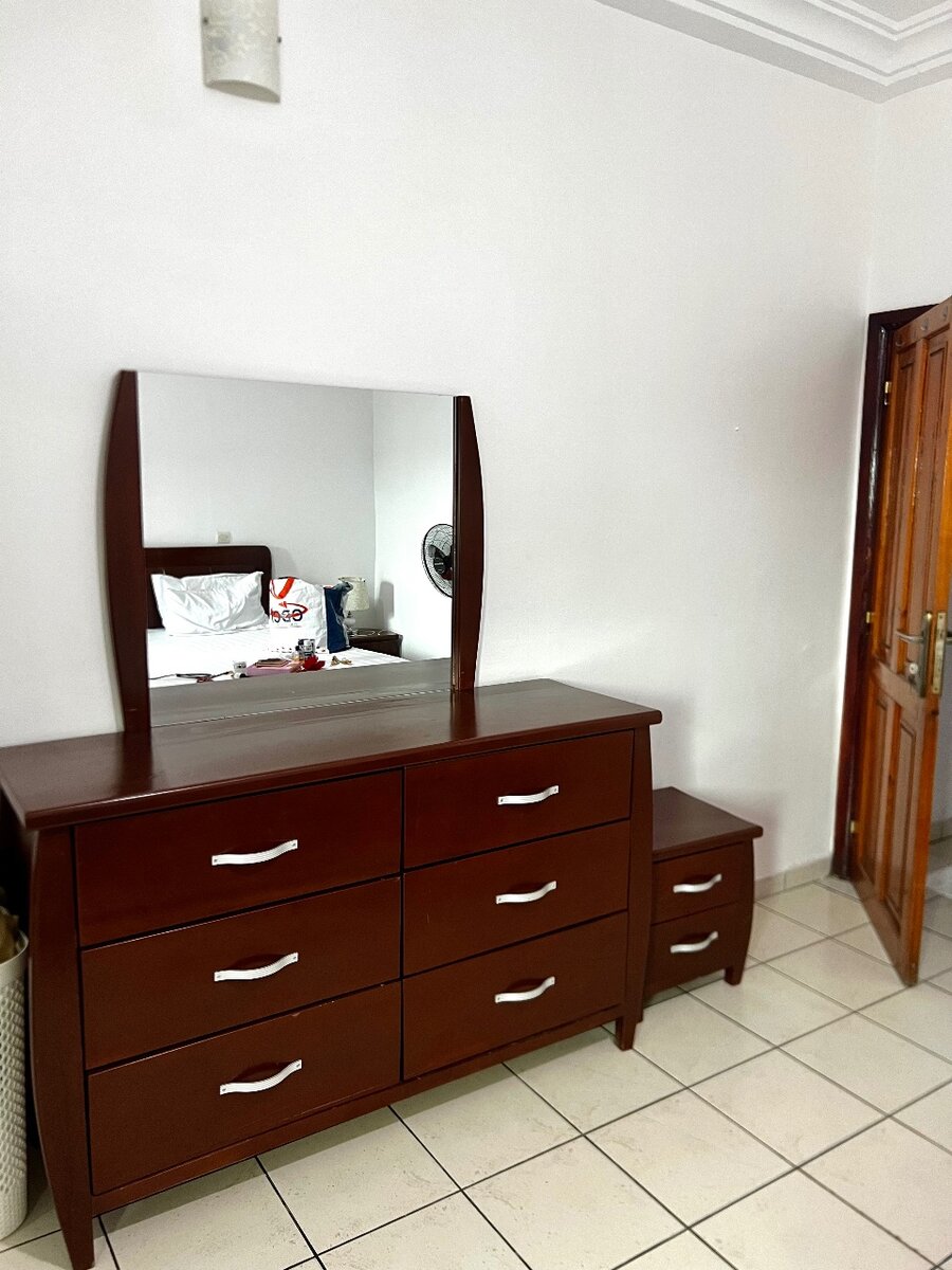 Transform your bedroom with this elegant wooden set, featuring a spacious dresser with mirror and a comfortable bed with polished finish. Perfect for adding classic style and functionality to any space. Ideal choice for modern and traditional interiors.