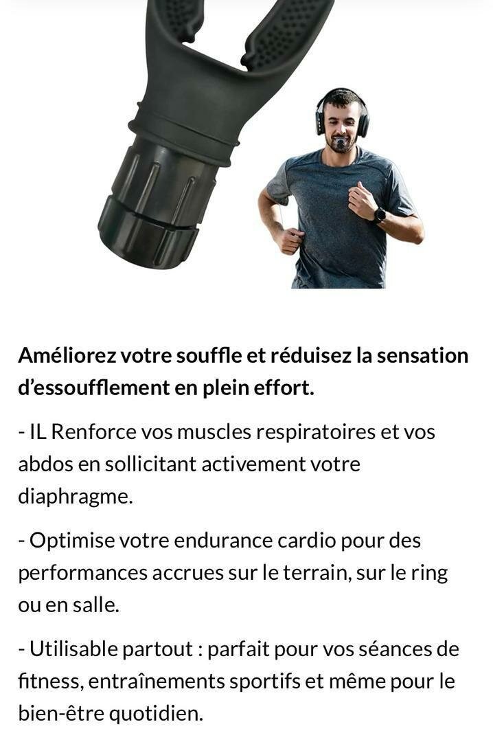 Améliorez votre endurance respiratoire avec cet embout sportif innovant. Renforcez vos muscles respiratoires et cardio pour des performances accrues. Idéal pour fitness et sports.