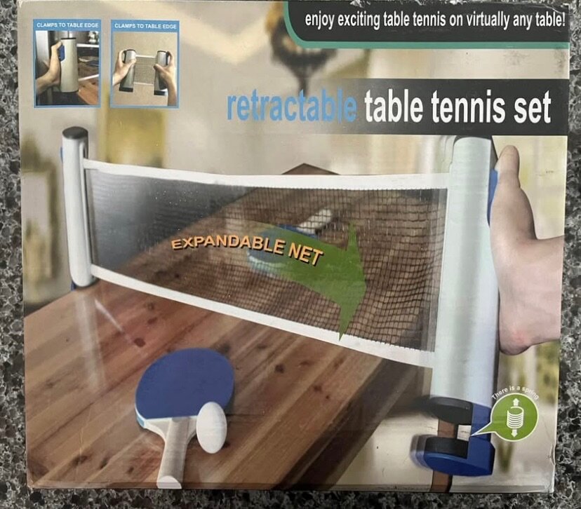 Full set that includes retractable, clip on net, 3 balls, 2 table tennis paddles. Works surprisingly well and gave us so much fun and good memories.