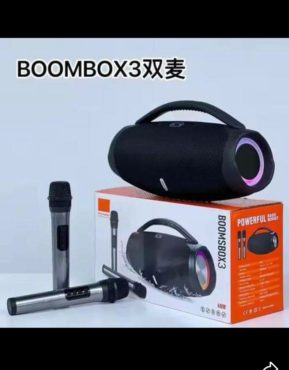 Profitez d'un son puissant avec la Boombox 3. Idéale pour des soirées karaoké grâce à ses deux microphones inclus. Portable et résistante, elle vous accompagne partout!