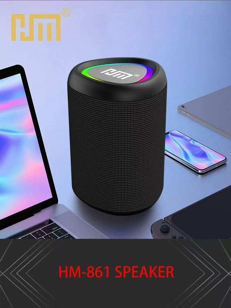 Parfaite pour une expérience sonore immersive, l'enceinte Bluetooth HM-861 allie puissance et design moderne. Dotée de LED RGB, elle s'harmonise avec vos soirées. Compatible avec tous vos appareils, elle est le choix idéal pour la maison ou à emporter. Profitez d'un son clair et vibrant où que vous soyez.