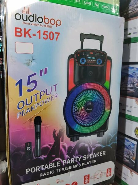 Découvrez cette enceinte Bluetooth portable équipée de lumières LED multicolores. Idéale pour des soirées, elle est facile à transporter grâce à sa poignée et son support inclus.